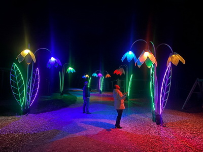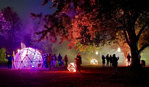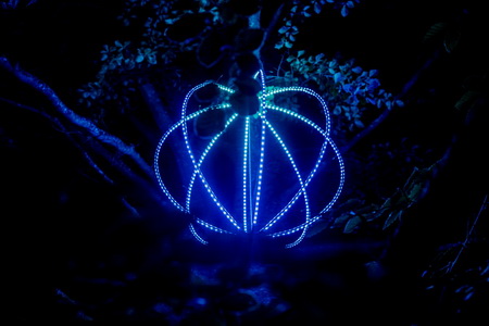 Die Installation „Portal in die Geometrie“ lädt die Besucher:innen in eine fantastische Welt ähnlich dem Planetensystem ein. Verschiedene Lichtobjekte verbinden sich stets neu mit den jeweiligen Orten zu faszinierenden Landschaften. Das Publikum kann sich frei durch die Objekte bewegen, einen Moment verweilen und staunen. Es entsteht ein Gegenpol zur Schnelllebigkeit der Welt – ein Genuss!