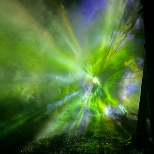 Diese Lichtkunstinstallation verbindet den Zauber sichtbarer Lichtstrahlen mit künstlicher Intelligenz. Videoprojektoren und Nebel schaffen eine immersive Umgebung aus dynamischen Lichtstrahlen, die in Echtzeit durch KI generierten Shadercode geformt und animiert werden. Ziel dieser Installation ist es, einen Raum zu schaffen, in dem Licht nicht nur ein Medium, sondern eine Erfahrung wird. Die Interaktion von Licht mit Nebel erzeugt Formen und Strukturen, durch die Besucher sich bewegen und mit denen sie interagieren können, wodurch die Grenzen zwischen Betrachter, Kunst und dem Raum, den sie einnimmt, verwischt werden.