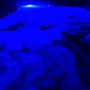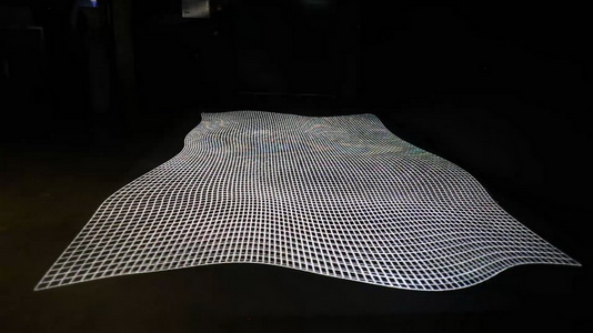 Das Publikum ist dazu eingeladen mit einer interaktiven Oberfläche zu experimentieren und kreative Turbulenzen zu erzeugen. Das digitale Gitter erscheint wie ein wellenartiger Teppich. Er lädt zum Interagieren ein, fängt menschliche Bewegung auf und transformiert diese in psychedelische, poetische Muster. Das Kunstwerk selbst wird zum Ort der Begegnung und des gemeinsamen Spiels.
